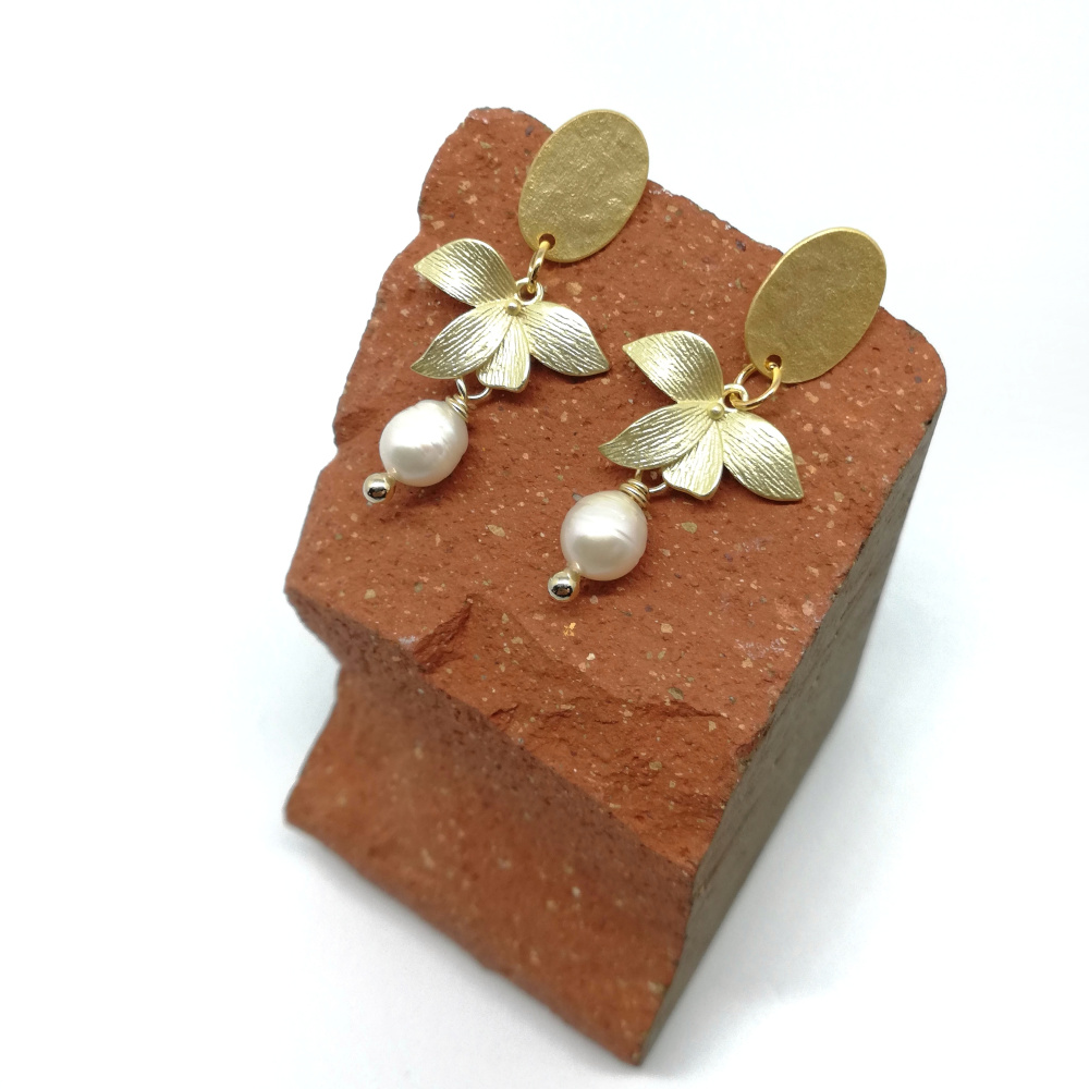 Pendientes hoja dorado mate y perla
